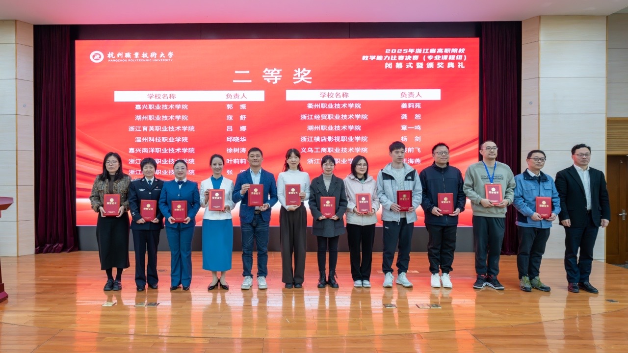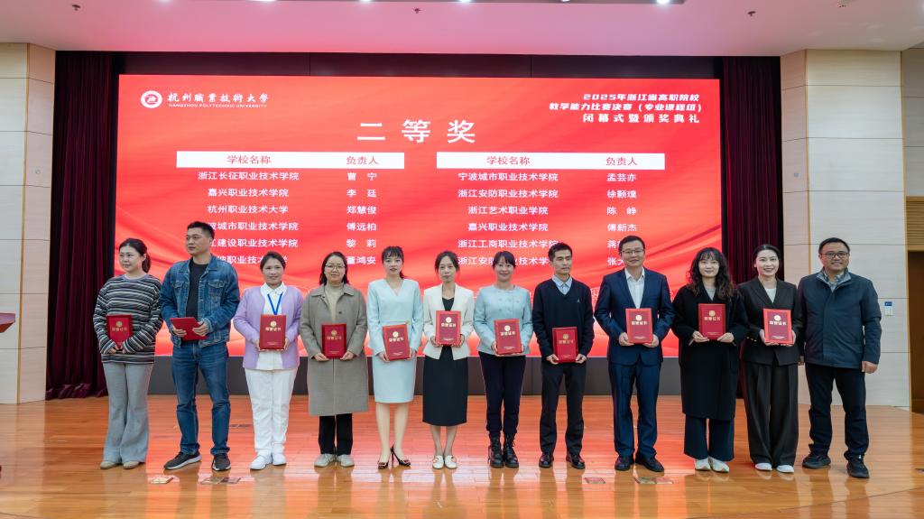 11月23日,2025年浙江省高职院校教学能力比赛决赛在杭州职业技术大学、台州科技职业学院落下帷幕。经过激烈角逐,我校人文与管理学院陈媛媛团队获公共基础课程组一等奖、护理学院曹宁团队获专业课程一组二等奖、智能技术学院叶莉莉团队获专业课程二组二等奖。