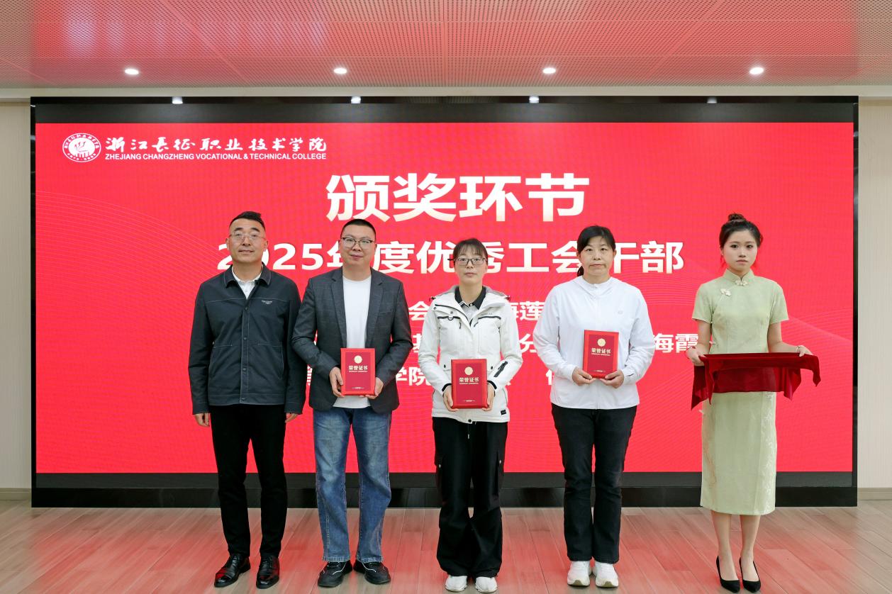 会上,校工会副主席陈建云宣读了表彰决定,并举行颁奖仪式。会议对“2026年新年教职工联欢会”优秀节目获奖单位进行了表彰,基础部分工会获“最具人气奖”,卫生与健康学院分工会、学生处团委分工会获“最具创意奖”,计算机与信息技术学院分工会、人文与管理学院分工会获“最具表现力奖”,建筑工程学院分工会、行政第二分工会获“最具活力奖”。随后,大会依次为2025年度工会先进个人、优秀工会干部和先进集体颁奖,受表彰代表依次上台领奖。