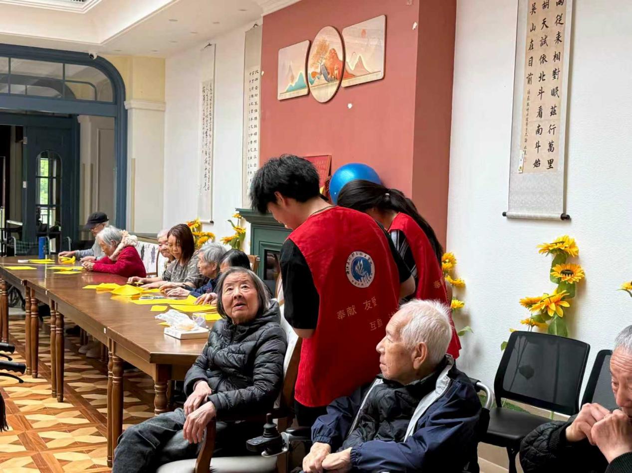 抵达医养中心后,同学们与老人们围坐一堂,共同开展温馨的手工创作活动。大家耐心陪伴、悉心指导长辈折纸、制作创意手工作品,全程放慢节奏、轻声交流,贴心协助长者完成一件件精致作品。现场氛围轻松融洽、欢声笑语不断,青春朝气与长者温情相互交融,小小的手工拉近了彼此距离,让老人们真切感受到建工学子的温暖与关怀。